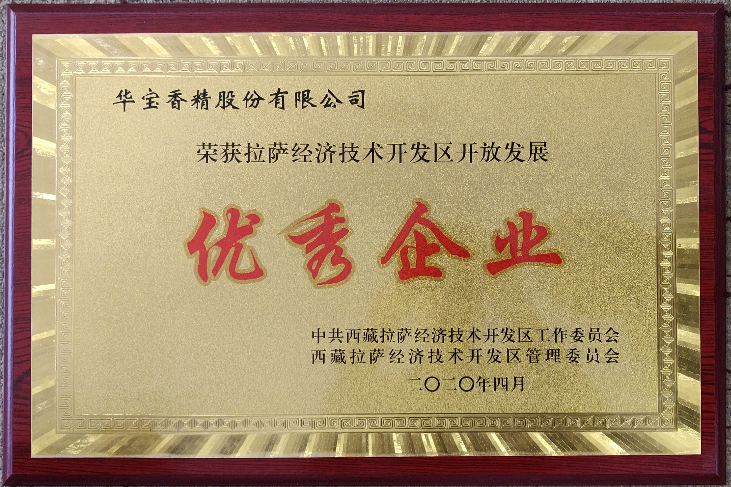 近日,華寶股份喜事連連,公司再獲中共西藏拉薩經(jīng)濟技術(shù)開(kāi)發(fā)區工作委員會(huì )、西藏拉薩經(jīng)濟技術(shù)開(kāi)發(fā)區管理委員會(huì )頒發(fā)的拉薩經(jīng)濟開(kāi)發(fā)區開(kāi)放發(fā)展“優(yōu)秀企業(yè)”獎,公司董事、總裁袁肖琴女士榮獲拉薩經(jīng)濟技術(shù)開(kāi)發(fā)區“優(yōu)秀企業(yè)家”稱(chēng)號。