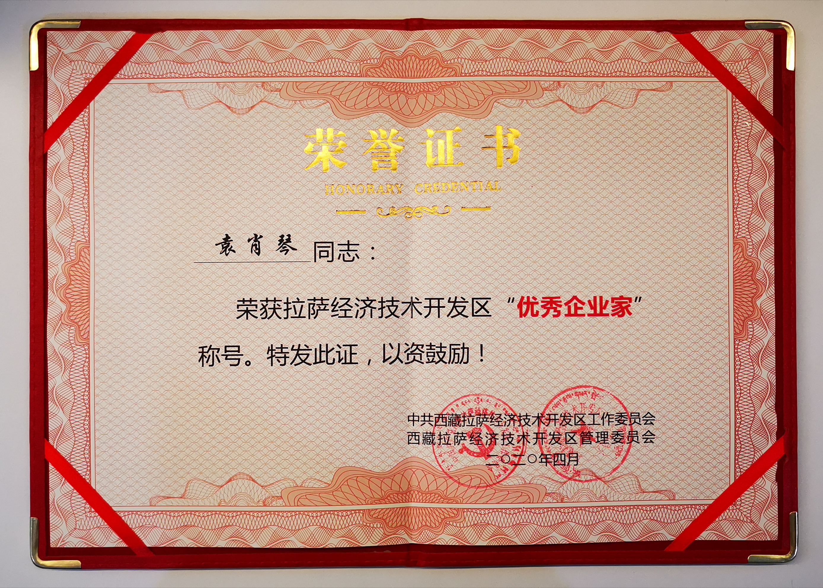 華寶股份及公司總裁袁肖琴女士分獲西藏拉薩經(jīng)開(kāi)區兩大獎項