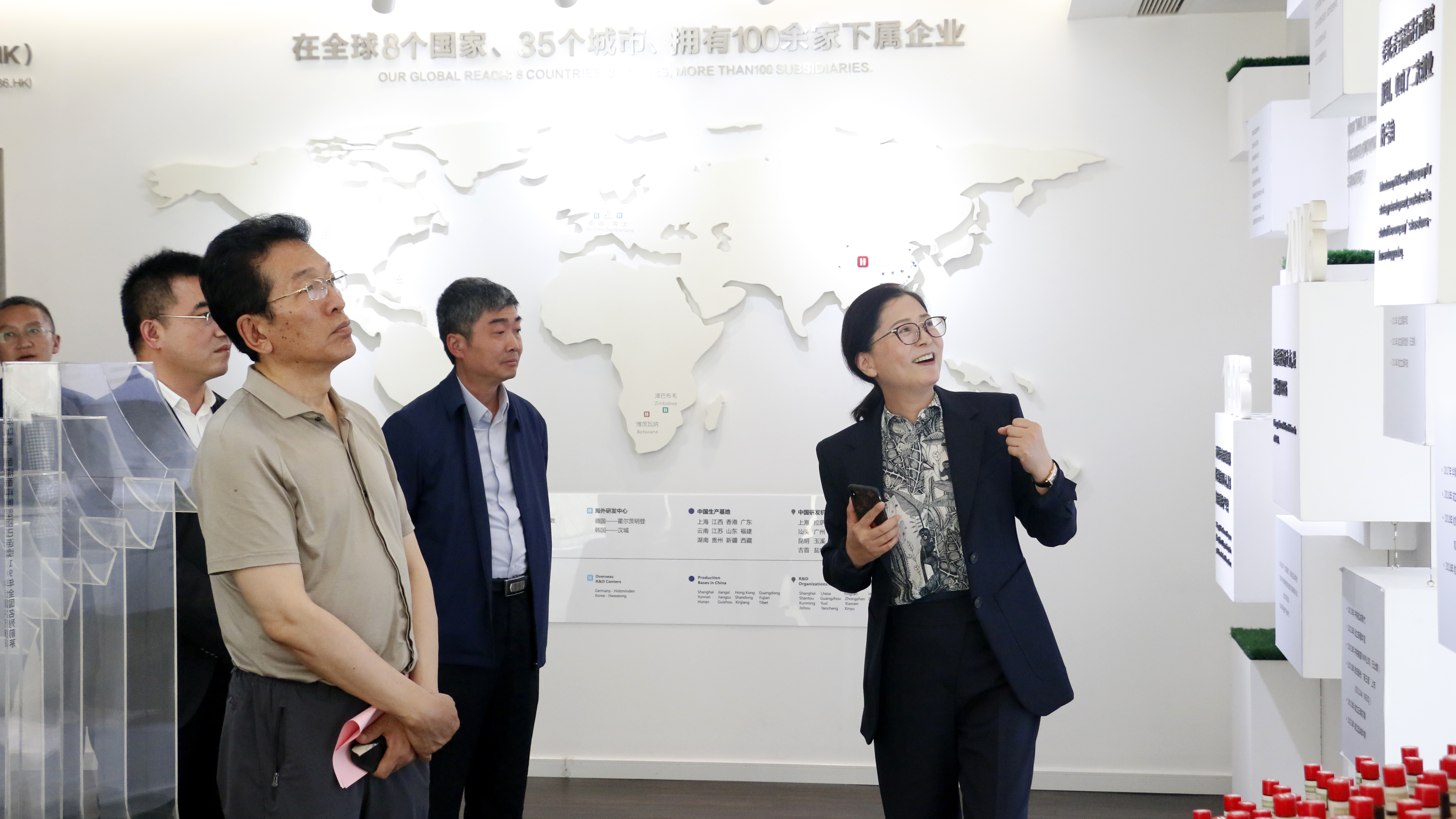調研座談會(huì )結束,阿沛·晉源主席一行在袁總等公司領(lǐng)導的陪同下參觀(guān)了華寶展廳。