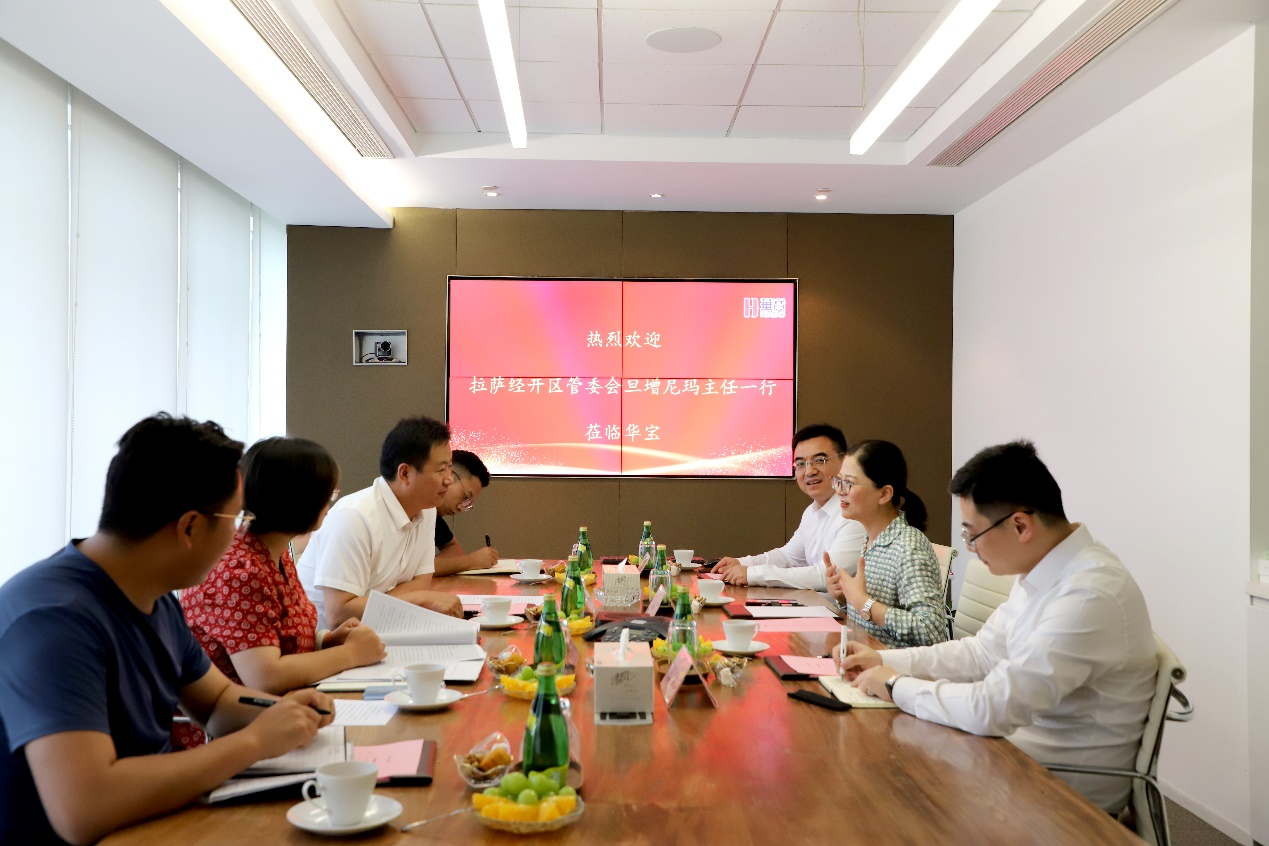 西藏拉薩經(jīng)開(kāi)區黨工委副書(shū)記、管委會(huì )主任丹增尼瑪一行蒞臨華寶股份上海園區考察調研