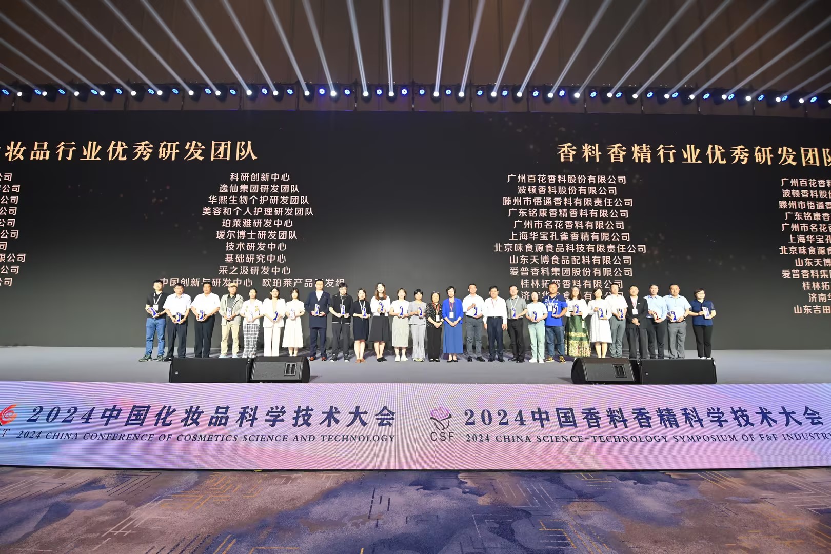 大會(huì )期間舉行了“2024中國化妝品科學(xué)技術(shù)大會(huì )暨第十五屆學(xué)術(shù)研討會(huì )”表彰儀式,華寶股份旗下華寶孔雀技術(shù)中心團隊榮獲“香料香精行業(yè)優(yōu)秀研發(fā)團隊”,華寶孔雀技術(shù)人員雙雙榮獲“香料香精行業(yè)優(yōu)秀研發(fā)工程師”稱(chēng)號。本次獲獎是華寶股份科技創(chuàng )新綜合實(shí)力體現,也是中國香化協(xié)會(huì )對公司研發(fā)實(shí)力、創(chuàng )新精神和科技人才培養的肯定與激勵。